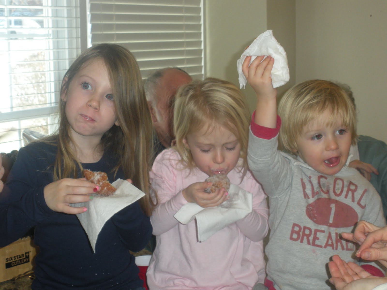 Raegan, Logan and Rylee chowing down! I think Rylee ate at least 15 shrimp that night! She just kept coming back for more! The girl has some seriously expensive taste in food and LOVES her shrimp!!! She also ate LOTS of fruit and Logan LOVED the Little Smokies!